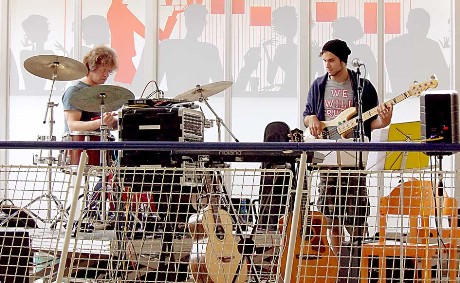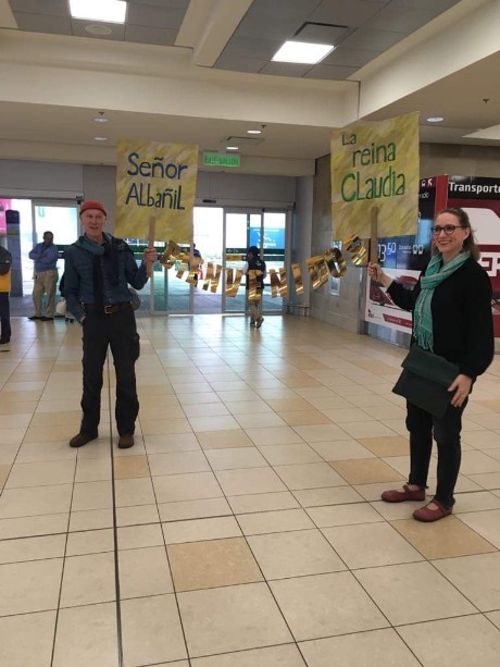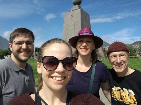 Hier links im Bild der Empfang von Claudia und Daniel am Flughafen in Quito.... ;) Die ecuadoriansiche Band rund um Patricio versteckt sich hinter einer Säule zur Begrüssung von LA REINA CLAUDIA (der Königin) und Herrn ALBAÑIL (= Maurer auf spanisch). Das war eine Freude!!!!